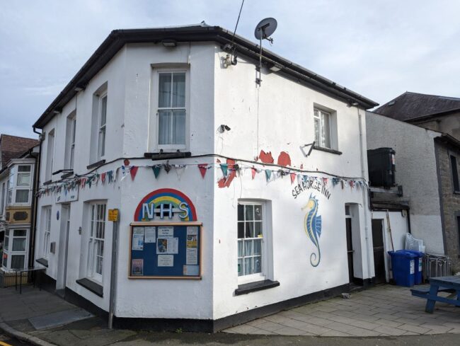 Dog friendly pub in New Quay, doesn’t have food however it has live music regularly. Lovely little pub with reasonably priced drinks.